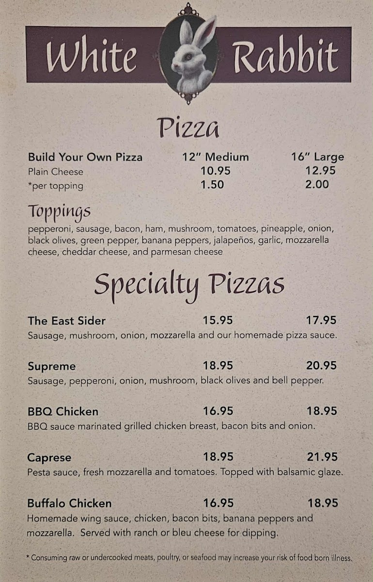 The overall feel of the menu matches the welcoming atmosphere of White Rabbit—a place where you can unwind with good food and familiar flavors, accompanied by friendly service and a community-oriented environment.